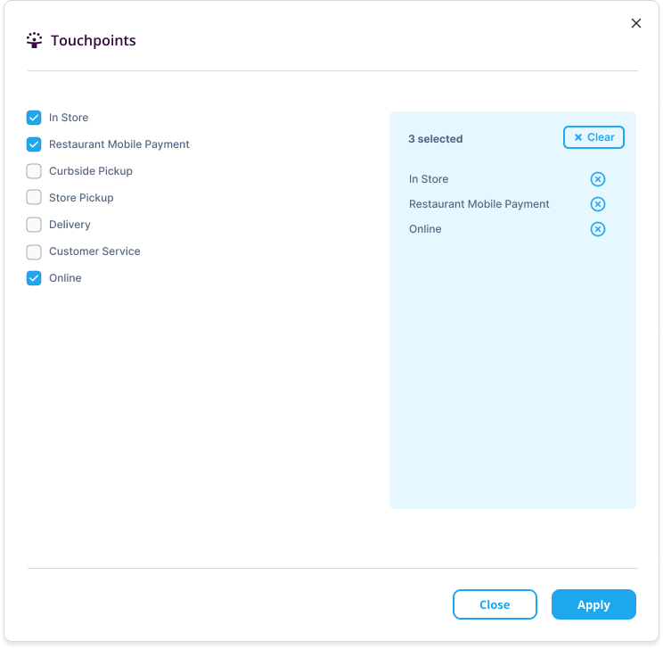 The list of outlets available to select will be based on the touchpoints you’ve selected.