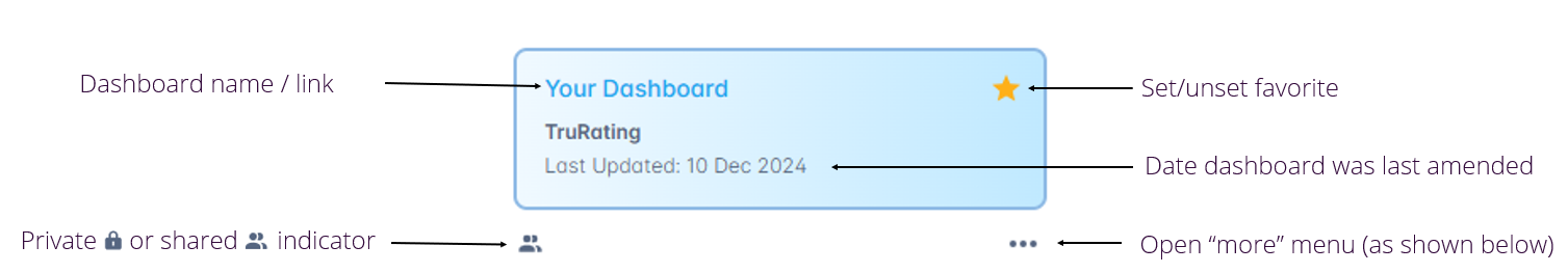 - The Dashboard Library will include all dashboards to which you have access, whether private to you or shared with you by other users.