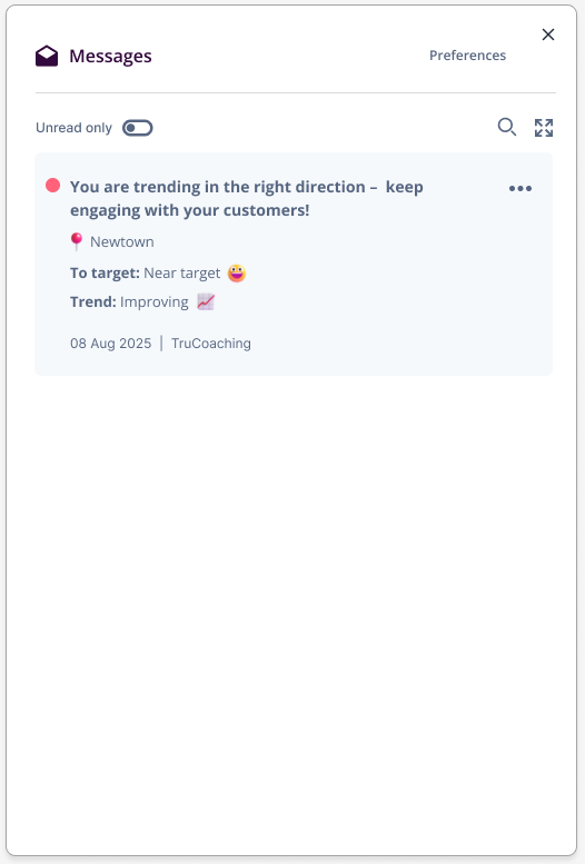 The Messages panel works just like an inbox, where you can see your read and unread message headers and click through to view the full content.